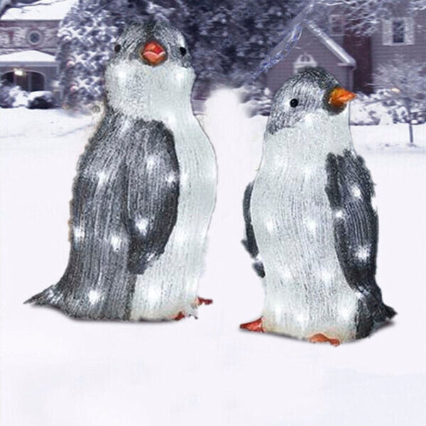 Each light-up penguin Christmas ornament is made of acrylic making it durable, weather-resistant, and waterproof. The Penguin yard decoration will be displayed in your yard for a long time, even in the rain, sun exposure, and windy days.