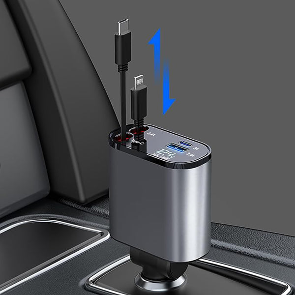 ultimate convenience with this 4-IN-1 Retractable Car Charger featuring dual