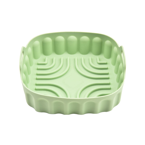 These air fryer silicone baking pans are non-stick and won't leave sticky and burning residue, the silicone is heat-resistant, and the ears have a firm grip to prevent burns immediately after baking. The raised lip of the air fryer liner protects the sides of the air fryer from food grease splatters.