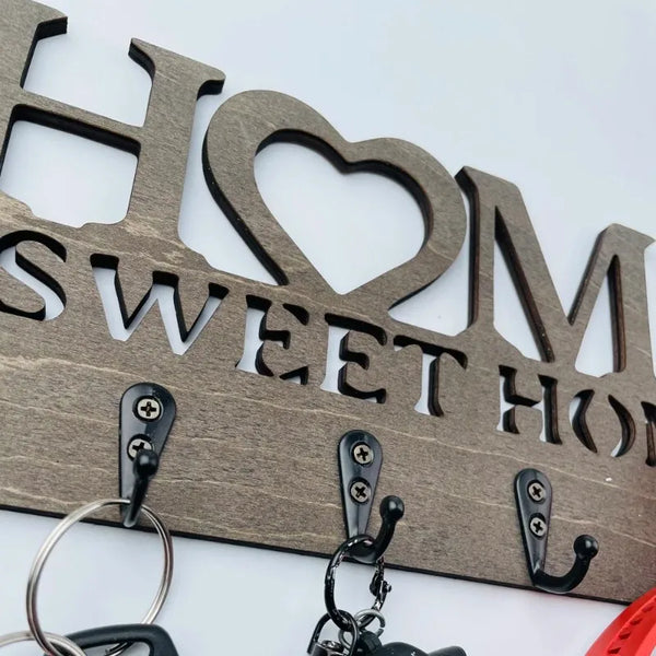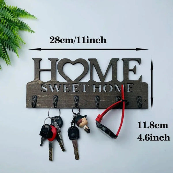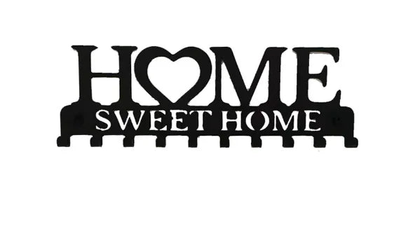 Keep your keys organized and add a touch of elegance to your home with our Key Holder Wall Mount. Crafted from durable black metal, this key hanger features a decorative "Home Sweets" sign, making it both functional and stylish.