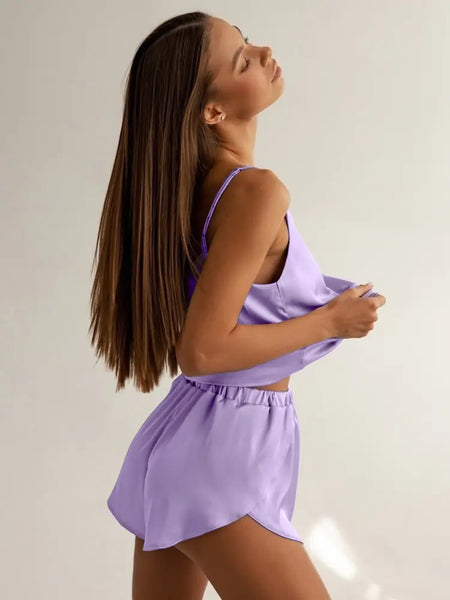 Experience luxury and comfort with the Linad Sexy Spaghetti Strap Sleepwear. Boasting a fashionable, elegant design in captivating purple, this two-piece set will quickly become your favorite go-to reversible loungewear for winding down in style. Crafted with ultra-soft high-quality fabric that is lightweight, breathable and moisture-wicking, the sleepwear is designed to keep you cool and comfortable throughout the night. The top features a classic v-neckline, spaghetti straps and decorative buttons, while the shorts feature a timeless elasticized drawstring waistband for added flexibility. Whether you're looking for something comfy to relax or lounge in at home or throw on after showering in the locker room at the gym, the Linad Sexy Spaghetti Strap Sleepwear will have you covered - literally. With its timeless aesthetic appeal and top of the line comfort level, it's no wonder why this piece of loungewear is fast becoming a must-have item among today's modern fashionistas. Elevate your wardrobe today with the ultimate night dress from Linad – turn heads in style without compromising on convenience or quality!