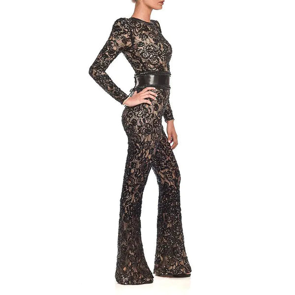 Introducing our 2020 Spring Sexy Lace Patchwork Hollow Out Night Club Jumpsuit – a mesmerizing blend of sultry style and vintage charm! This one-piece pantsuit is designed to make a statement, featuring intricate lace patchwork that adds a touch of sensuality while maintaining an air of elegance. With its solid full sleeves and figure-hugging bandage design, this jumpsuit accentuates your curves and ensures you're the center of attention at any night club event. Step into the spotlight and embrace the allure of a timeless romper outfit that's perfect for those looking to make a bold fashion statement. Whether it's a night on the town or a special event, this jumpsuit is the epitome of chic, sexy, and stylish. Don't miss the chance to own this standout piece that effortlessly combines vintage aesthetics with contemporary fashion sensibilities.