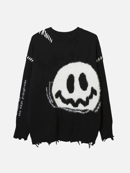 Introducing our Knit Distressed Smiley Sweater, a nostalgic nod to the 2000s fashion scene. This cozy knitted sweater features carefully crafted distressed accents at the hem and sleeve cuffs, capturing that effortlessly edgy vibe. The iconic smiling face print adds a touch of whimsy and positivity. Crafted from high-quality acrylic, it's not only soft against the skin but also provides the ultimate comfort. Embrace the carefree and relaxed aura of this piece, perfect for channeling retro flair while infusing a dash of fun and coolness into your look. Get ready to turn heads and spread smiles with this playful twist on classic retro fashion.