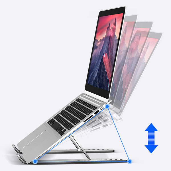 The laptop riser is made of aluminum alloy with rubber feet which helps reduce friction and prevents your device from sliding during important Zoom meetings, writing essays, and whatever else you need to accomplish.