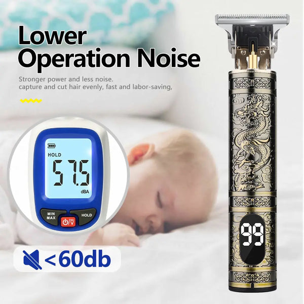 Upgrade your shaving experience with the Rechargeable Men's Shaver Trimmer, a reliable and powerful electric hair cutting machine ideal for professional barbers or personal grooming. This vintage T9 Clipper Hair Shaver Trimmer offers a balanced level of convenience and durability. The groomer trimmer is rechargeable, boasting up to 120 minutes runtime with just 3-4 hours charging time. With an easy-to-clean ceramic blade and a comfortable ergonomic design, you can look your best with every trim. Faster cutting performance gives you precise results without sacrificing quality so you can focus on what matters most—looking sharp!