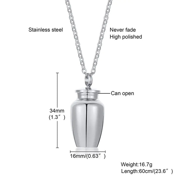 Express your unique style and cherish memories with the Vnox Openable Earthen Jar Columbarium Shape Pendant. This fashionable and meaningful necklace is designed for both men and women, featuring an openable pendant shaped like a columbarium. It serves as a stylish perfume holder or a discreet ashes cremation urn, allowing you to keep a cherished scent or a small remembrance of a loved one close to your heart. Embrace punk rock aesthetics with this versatile and sentimental necklace.