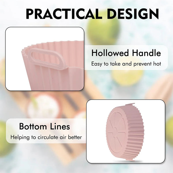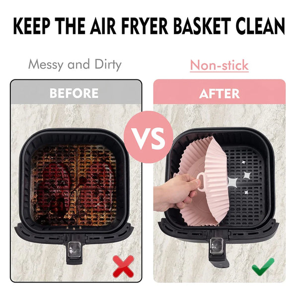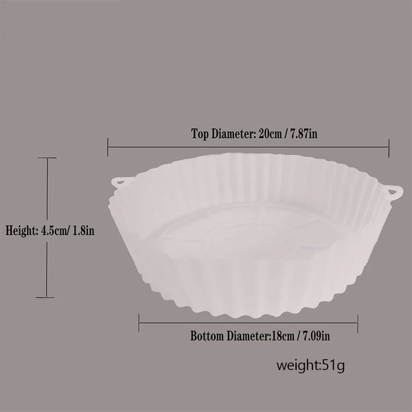 Discover the ultimate kitchen accessory with our Reusable Air Fryer Silicone Pot. Designed for versatility and efficiency, this eco-friendly pot is crafted from durable, heat-resistant silicone, making it perfect for high-temperature baking. Its innovative double ear handle design ensures safe handling and easy transition from air fryer to table. Optimized for air fryers, it enhances cooking performance, prevents oil spills, and is exceptionally easy to clean, addressing the hassle of maintaining fryer baskets. Made from medical-grade, non-stick, and non-toxic silicone, it guarantees a safe cooking experience, free from harmful chemicals. Upgrade your air frying with this essential accessory, combining sustainability, safety, and convenience in one.