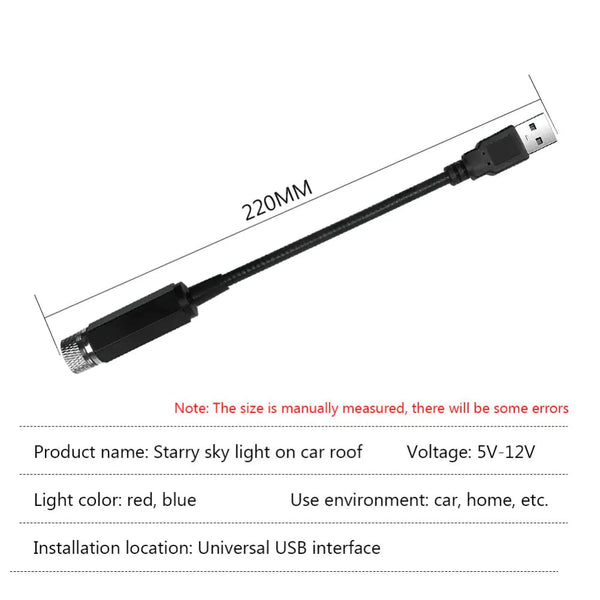 Transform your car interior or room ceiling into a captivating galaxy with our Mini LED Car Night Light Roof Projector. This USB-powered decorative lamp adds a mesmerizing atmosphere to your space, creating a starry night sky right above you. The adjustable design allows you to position the stars and galaxies as you like, setting the perfect ambiance for relaxation or travel. Whether you're on a road trip, spending time in your car, or looking to enhance your room's décor, this mini LED projector is a must-have. Elevate your surroundings and create a magical atmosphere with this easy-to-use, versatile decorative light.