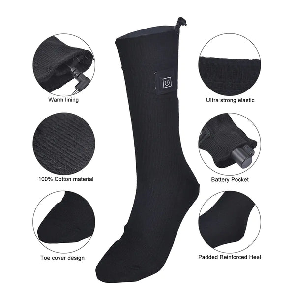 Embrace the winter chill with toasty toes courtesy of our Breathable Heated Socks! Designed to keep you cozy during all your cold-weather adventures, these socks are a must-have for any outdoor enthusiast. Crafted with cutting-edge heat-conductive materials and far-infrared fibers, these socks offer superior warmth and comfort. The innovative heating element covers the entire foot, ensuring that even the coldest toes stay toasty warm. Say goodbye to cold feet and hello to improved blood circulation, making these socks ideal for those with arthritis or joint stiffness. Equipped with a powerful 7.4V 2200mAh rechargeable battery, these socks offer hours of warmth on a single charge. Plus, with three temperature settings to choose from, you can customize your comfort level to suit any conditions. Whether you're hitting the slopes, hiking through snowy trails, or simply running errands on a chilly day, our Breathable Heated Socks have got you covered. Don't let cold feet hold you back – stay warm and comfortable all winter long with our innovative heated socks!