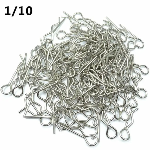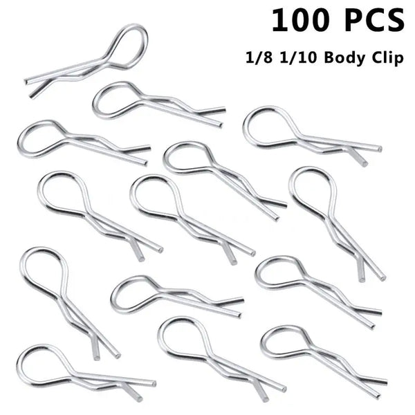Discover the ultimate solution for your RC model cars with our RC Body Shell Clips, crafted from premium stainless steel for unmatched durability and longevity. These clips are designed with a user-friendly bent shape, facilitating easy installation and removal, making them perfect for securing body posts, wings, and battery holders across all 1/16 scale RC vehicles. Our package includes 100 universal RC body clips, ensuring you have plenty of spares for any needs. Their hairpin style design guarantees a fast and secure hold, enhancing the stability and performance of your RC vehicles. Ideal for hobbyists and RC enthusiasts alike, these clips are an essential accessory for maintaining the integrity and functionality of your remote-controlled adventures.
