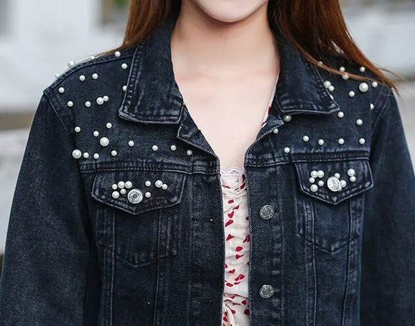 Introducing our stylish and versatile Denim Jacket for Women, the perfect addition to your autumn wardrobe! This New Autumn Women's Jean Jacket exudes timeless charm and modern flair, making it a must-have for fashion-conscious women. Crafted with high-quality denim fabric, this jacket offers both comfort and durability, ensuring it will be your go-to outerwear choice for many seasons to come. The pearl embellishments add a touch of elegance and femininity, elevating the classic denim look to a whole new level. Designed with a flattering and comfortable fit, this Casual Denim Jacket is perfect for everyday wear. Its long sleeves provide extra warmth, making it ideal for transitional weather. Whether you're dressing up for a casual outing or dressing down for a laid-back day, this jacket effortlessly complements any outfit.