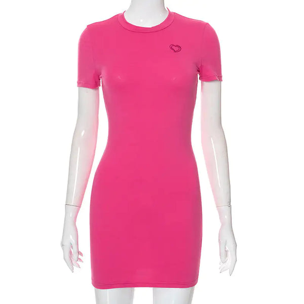 Step out in confidence wearing the Heart-Embroider Bodycon Mini Dress. Check all the boxes with this stylish number that features a crew neck, short sleeves, slim fit and mini/above knee-length. You’ll never have to worry about sacrificing comfort for style – thanks to its moderate stretch and soft fabric made from polyester. Show off your fashion prowess with the lovely embroidered heart design, available in a stunning choice of solid colors. Whether you're spiffing up for a date or getting ready for a special occasion, you can’t go wrong wearing this charming dress. Turn heads at any event and feel your best self when you ease into this gorgeous piece.